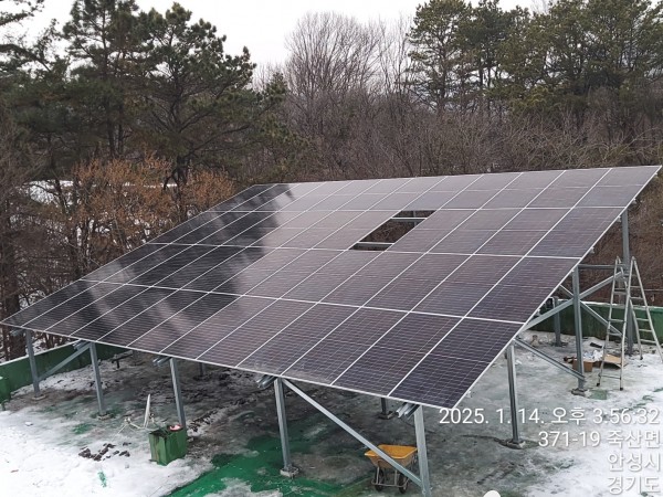 경기도 안성시 죽산면 PPA 발전사업 설치현장 작성일 : 2025-12-05 고객명 : 이○순주소 : 경기도 안성시 죽산면용량 : 29.61kW태양광 모듈 : HIC-T630OJ (현대에너지솔루션 500W 결정질 태양전지 모듈)태양광 인버터 : STD34K-B (금비전자 태양광발전용 계통연계형 인버터) 목록 이전글경기도 이천시 마장면 PPA 발전사업 설치현장 25.12.05 다음글강원도 동해시 동해대로 PPA 발전사업 설치현장 25.12.05